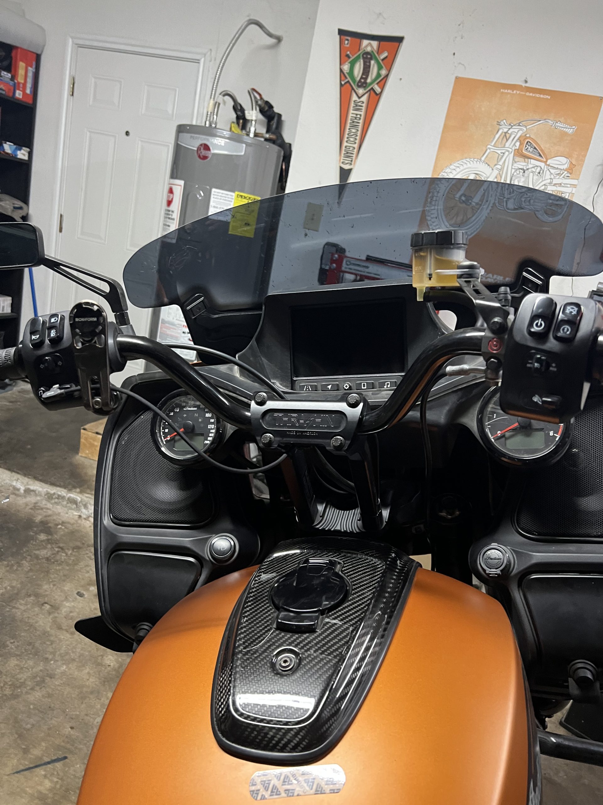 Built for riders who push. Our kit relocates the factory Ride Command touchscreen plus the speedometer and tach into a forward gauge pod. The result is cleaner lines, better ergonomics, and a cockpit that finally matches the way you ride.