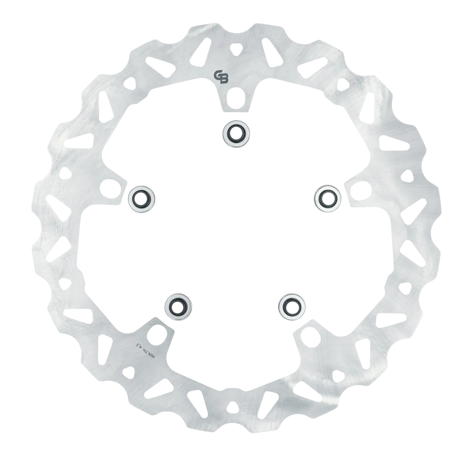 Each rotor is laser-cut for precise edge quality and tight manufacturing tolerances, ensuring perfect fitment without distortion. The Wave® profile isn’t just for aesthetics, it reduces unsprung weight, increases surface area, and sheds heat quickly, helping to control fade during prolonged braking. The open design also clears debris more effectively than traditional round rotors, keeping pad engagement clean even in dusty or rugged terrain.