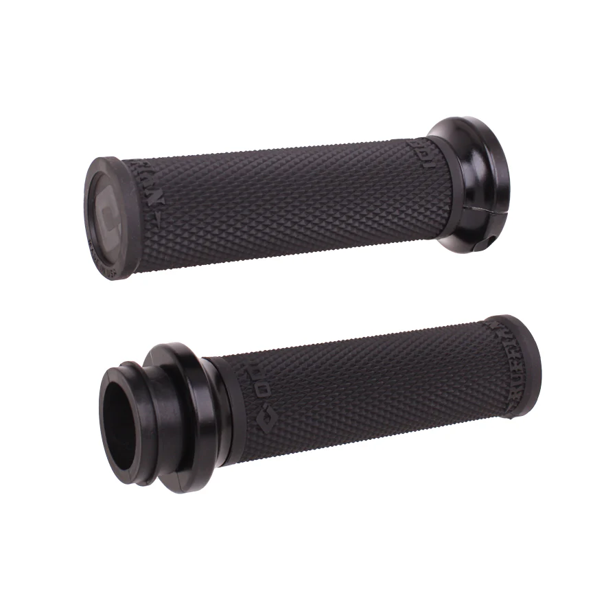 Our newest addition to the ODI v-Twin collection brings in our iconic RUFFIAN Grip pattern into our patented Lock-On™ grip system. Constructed of our proprietary Medium Compound TPE material and featuring our legendary Ruffian Full-Knurl diamond pattern, these grips provide exceptional feedback and traction. Taking our classic RUFFIAN pattern through all lines of powersports and now made specific for V-Twin Performance with a slim feel riders and racers have come to love! Proudly made in the USA!