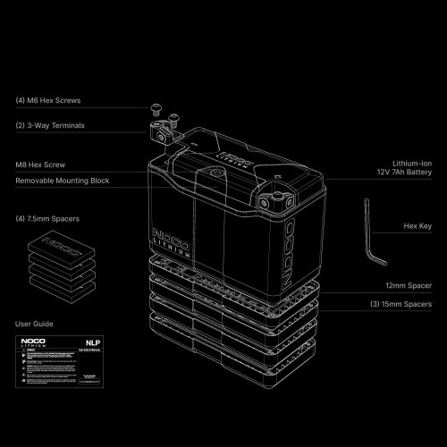 Introducing the all-new NOCO Lithium NLP20 12V Lithium Powersport Battery, a Group 20 battery, rated at 7Ah (89Wh) and 600-amps of starting power. It’s better than lead-acid motorcycle batteries in almost every way: no sulfation, no activation, no acid, no maintenance, no water needed, and it comes fully charged and ready to install.