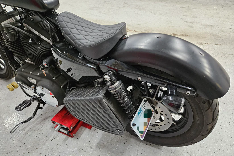 Clean up your tail with this simple clean setup. Moves your license plate tight to the side of the bike for a slim look. Built to last right here in USA.